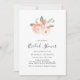 Les invitations à la douche nuptiale printanière, avec d'élégantes nuances d'orange de couleur pêche dans les fleurs, tulipes et la verdure botanique.