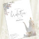 Une théière en porcelaine et une théière sont entourées de jolies fleurs sur cette élégante invitation au thé à la douche nuptiale. La théière a des accents dorés et de belles fleurs peintes dessus, tout comme la coupe délicate de coordination. Le script Extraordinaire écrit à la main ajoute à l'aspect. Un design si merveilleux pour votre thé nuptial. Voir la coordination des articles dans notre boutique, Enchanted Finch.
