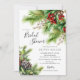 Cette élégante invitation à la douche nuptiale de vacances hivernales présente de magnifiques verdures avec des baies saintes et des pinecones. L'invitation est parfaite pour célébrer la future mariée pendant la période des fêtes. L'ensemble est festif et sophistiqué, et l'invitation impressionne vos invités.