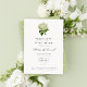Facile à customiser texte formel et élégant invités invitations pour célébrer la belle mariée à être dans le nouveau style traditionnel grand-millénaire avec un vert sage moderne doux sur un arrière - plan blanc propre et accentué par une illustration antique d'une tige de fleur d'hydrangée blanche. Un motif de soutien de petits pois ajoute à l'ambiance féminine de garden party.