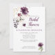 Invitations élégantes et chic de douche nuptiale. Des pivoines violettes foncées avec des roses et des feuilles aux contours d'or avec des feuilles et des bourgeons violets et verts entourent un cadre violet en forme de losange. Le dos de la carte est un violet foncé. Le modèle est facile à personnaliser - mais si vous avez besoin d'aide ou souhaitez ce design sur quelque chose d'autre, s'il vous plaît envoyez-moi un courriel à shutterbug600@yahoo.com.