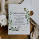 Cette invitation à la nuptiale feuille verte tropicale est parfaite pour une douche de mariage de destination. Le design présente de beaux feuilles verts peints à la main, ornant un cadre géométrique doré.