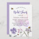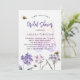 Un arrière - plan blanc. Décoré d'abeilles et de fleurs sauvages peints en violet et rose et d'un grand papillon. Personnalisez et ajoutez un nom et des détails du parti.