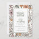 Invitation à la douche nuptiale à thème floral blanc, avec élégant script de calligraphie décorative. Des teintes vibrantes se mêlent pour créer un kaléidoscope de fleurs sauvages, avec un cadre blanc sur ce motif de fleurs. Le cadre contient votre texte d'invitation, avec des teintes vibrantes et un style de script de style rétro joli. Le motif de fleurs complet est affiché à l'arrière. Un style botanique dynamique. Disponible en version imprimée, en téléchargement numérique ou les deux.