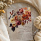 Cette invitation à la douche nuptiale d'automne boho comprend un magnifique collage de roses de chou, roses de jardin, ranunculus, baies, pommes et feuilles. L'invitation est placée sur un arrière - plan crème légère avec la date, l'heure et l'emplacement de la douche nuptiale dans une police de caractères de bon goût. Le design bohème et les couleurs automnales apportent une touche de fantaisie et de romantisme, et le design général est parfait pour célébrer la future mariée avec vos proches d'une manière élégante et festive.