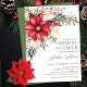 Cette élégante invitation à la douche nuptiale de vacances hivernales présente de magnifiques fleurs de poinsettia rouges avec verdure. L'invitation est parfaite pour célébrer la future mariée pendant la période des fêtes. L'avant de l'invitation présente les fleurs de poinsettia rouges et la verdure, ainsi que le nom, la date, l'heure et l'emplacement de la douche de la mariée. L'ensemble est festif et sophistiqué, et l'invitation impressionne vos invités.