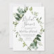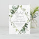 Invitation de douche nuptiale Belle Eucalyptus aquarelle Cadre sur arrière - plan blanc rendre cette invitation stupéfiant! Ajoutez les détails de votre événement à l'aide du formulaire modèle. Un texte supplémentaire peut être ajouté au verso si nécessaire à l'aide de la fonction Personnaliser.