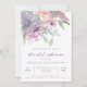 Une jolie invitation à la douche nuptiale avec des fleurs d'aquarelle en lilas et rose, avec des feuilles verts. "douche nuptiale" est en calligraphie moderne. L'envers est orné d'un motif de fleurs pastel aquarelle.
