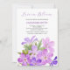 Elégante et simple invitation à la douche nuptiale avec fleur de géranium violet rose et texte de calligraphie dynamique.