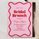 C'est une invitation à Brunch Fête des mariées de la frontière rose-rouge rétro Wavy!