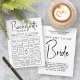 Ajoutez votre touche spéciale à cette carte de jeu de douche pour mariée ou couple avec deux jeux, Bachelorette Bingo (à l'avant) et Don't Say Bride (à l'arrière). Cette conception polyvalente comprend une typographie moderne et une grille de Bingo (à l'avant) avec vos propres phrases de jeu personnalisées. Modifiez facilement les couleurs pour correspondre à votre thème d'événement.