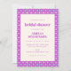 Ajoutez une touche ludique et moderne à votre douche nuptiale avec ces invitations vibrantes! Doté d'une bordure géométrique violet audacieuse, ce design est parfait pour donner un ton amusant et élégant à l'événement. La disposition propre et facile à lire assure que tous les détails clés sont avant et centre, ce qui le rend simple pour les invités à RSVP et de participer à la célébration. Disponibles comme fichier téléchargeable pour un partage rapide ou comme cartes imprimées professionnellement pour une finition élégante, ces invitations sont parfaites pour créer une douche nuptiale mémorable et joyeuse. Un choix enchanteur pour honorer la future mariée !