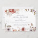 Cette simple invitation à la douche nuptiale horizontale fleurie est parfaite pour un wedding shower rustique. Le design boho fantaisiste est composé de fleurs rustiques roses rousses, bordeaux et marsala aux tonalités sobres et romantiques.