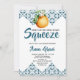 Main Squeeze Lemon Méditerranéen Fête des mariées Amusante Invitation Invitations à une belle journée d'amour et citrons avec cette incroyable "Main Squeeze" nuptiale douche Invitation, avec des citrons jaune vif jumelés avec les motifs classiques de tuiles bleues méditerranéennes. Mélange parfait de charme et d'élégance, ce design apporte la chaleur de la côte amalfitaine ou des îles grecques à votre fête de mariage. Entièrement personnalisable avec le nom, la date, l’heure, le lieu et les détails RSVP de la future mariée, cet invitation donne le ton d’une douche élégante et mémorable, idéale pour les événements d’été, les brunchs jardins ou les thèmes de destination.