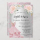 Une invitation à la Fête des mariées moderne, élégante et glamour. Un arrière - plan à l'aspect faux argent avec parties scintillant en faux rose, pétille, une robe et des fleurs roses rousses. Le nom est écrit avec un script de style moderne écrit à la main. Personnalisez et ajoutez les détails de votre fête.
