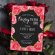 Les invitations à la fête de la nuptiale à thème Derby comportent une bordure de roses rouges d'aquarelle sur votre CHOIX DE COULEUR ARRIÈRE - PLAN, nous montrons noir. CORRESPONDRE des articles dans notre magasin.