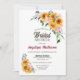 Invitation vos amis et proches à votre douche nuptiale avec cette invitation rustique avec des tournesols vibrants, des roses roses délicates et des sprays de branches d'eucalyptus.