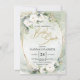 Aquarelle roses et feuilles blancs avec cadre parties scintillant or et points sur arrière - plan vert pâle