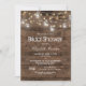 Cette belle et élégante invitation à la douche nuptiale présente des jarres de maçon et des lampes à cordes sur un arrière - plan en bois rustique. Facile à customiser avec votre propre nom et informations sur la douche. Veuillez me contacter pour toute personnalisation de design supplémentaire dont vous pourriez avoir besoin pour votre beau mariage. Design © par TK Goforth. Pour la coordination des articles, veuillez visiter ma collection de Mariages Rustic Mason Jar et String Lights et ma boutique Zazzle :