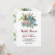 Fête des mariées Boho Cactus Un élégant et moderne invitations de douche nuptiale fleurie pour participer à un bouquet de roses d'aquarelle douce, cactus dans les tons boho, avec des feuilles botaniques verdoyants. Personnalisez vos détails de douche nuptiale dans un succulent délicat avec un accent mis sur la calligraphie manuscrite.