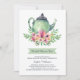 Cette invitation à la douche nuptiale élégante et élégante présente une aquarelle illustrant une théière. Sous la théière se trouve un bouquet de jolies fleurs aquarelles. Sous les fleurs, est une bannière vert clair avec le texte "Thé à la Fête des mariées" imprimé en bleu foncé. Le texte restant est imprimé en bleu foncé sur un arrière - plan blanc. Cette invitation est impeccable et est l'invitation parfaite à cette mariée raffinée et élégante d'être. Tout le texte est entièrement personnalisable pour personnaliser les informations selon vos besoins à l'aide des zones de texte dans la colonne de droite de la page Web. Si vous préférez modifier les polices sur l'invitation, cliquez simplement sur le bouton "customiser" et Zazzle vous permettra facilement de faire cela. Cette invitation est également disponible dans plusieurs types de papier de haute qualité. De nombreuses formes d'invitation sont disponibles moyennant un supplément. Ceux-ci sont disponibles à voir dans la colonne de droite de la page Web. Les invitations Zazzle sont de qualité fabuleuse, et je sais que vous allez adorer ceux-ci! S'il vous plaît, envoyez-moi un message si vous avez des questions ou des préoccupations.
