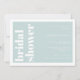 Typographie moderne grand texte Mint Turquoise Bridal Shower Invitation Card, texte entièrement personnalisable et options de couleur.