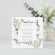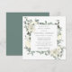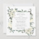 L'élégante invitation à la douche nuptiale présente un cadre botanique de fleurs blanches et de feuilles verts profonds.