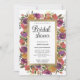 Invitations de douche nuptiale Mariage à l'aquarelle violet, orange, rose et or à fleurs. Cette invitation botanique à la floraison peinte à la main est parfaite pour toute fille élégante et sophistiquée ou n'importe qui. Ce design est idéal pour un événement de fête branché et élégant. Customisez ce design avec votre propre message et des informations personnalisées. Tous les dessins sont imprimés.