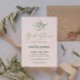 Il s'agit d'un design élégant d'invitation à la douche nuptiale avec feuillage vert poussiéreux sur une texture de papier artisanal beige avec typographie personnalisable et élégante en vert foncé. C'est un design sophistiqué et élégant que vous pouvez éditer du texte, des images et des polices. Ce design évoque une atmosphère organique et une élégance simple.