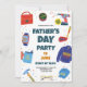 Cette carte postale dynamique et ludique d'invitation à la Fête des pères est parfaite pour célébrer papa en style! Le design comprend une gamme amusante d'illustrations sur le thème du père, dont une perceuse à moteur, une smartwatch, une tasse "#1 Dad" et d'autres icônes ludiques qui représentent la vie d'un père. Le texte "Fête des pères Party", ainsi que la date et l'heure, ajoute une touche festive à l'invitation. Les couleurs sont vives, et la disposition est conçue pour saisir l'essence d'un joyeux rassemblement familial. Customisez cette invitation avec les détails de votre fête spécifique pour en faire la vôtre unique et vous assurer que votre célébration de Fête des pères est inoubliable.