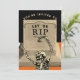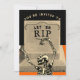 Amusants invitations d'Halloween avec une pierre tombale et un squelette dansant. Customisez facilement pour votre fête ou événement.