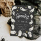 Carte modèle d'invitation à la fête d'halloween moderne et fantaisiste avec un texte de typographie écrit à la main au milieu qui dit "Soyons Éffrayants." Illustration de mignons fantômes avec étoiles.