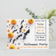 moderne Halloween Party invitation mignonne style joli noir orange et blanc avec araignée citrouille et chauve-souris design unique invitation design pour enfants et adultes