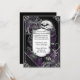 Une chauve-souris, une pleine lune, des toiles d'araignée et des citrouilles se combinent sur une élégante invitation à la fête d'Halloween en noir et blanc.