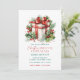 Créez votre cadeau de Noël idéal à l'invitation de la fête d'ouverture avec une boîte de cadeau de Noël animée et festive, agrémentée de décorations vives, rehaussée d'une élégante police rouge cursive. Personnalisez-le avec les détails de la fête dans un mélange de teintes vert foncé et rouge pour convenir à vos informations de fête.
