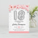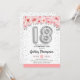18e anniversaire de fête d'invitation. Design élégant en argent faux parties scintillant avec accent floral. Carte Invitation avec le numéro d'argent 18 ballons, police de script avec confetti. Corail blanc rose, blanc. Parfait pour une élégante dix-huitième célébration anniversaire. Message-moi si vous avez besoin d'âge personnalisé.
