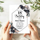 Invitation vos amis et proches avec cette invitation moderne à fêter le 18ème anniversaire de fêtes de fleurs noires. La zone de texte personnalisable de ce modèle d'invitation vous permet d'inclure sans effort tous les détails nécessaires à votre fête d'anniversaire, y compris la date, l'heure, le lieu et les informations RSVP. Une variété de types de papier et de styles d'angle sont disponibles pour vos invitations uniques, ainsi que l'option de téléchargement si vous préférez un format numérique.