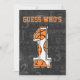 Célébrez le premier anniversaire de votre future star du basket avec cette invitation moderne avec un design de tableau noir. Le devant de l'invitation a un grand nombre 1 avec des balles de basket à l'intérieur, avec le texte, "Devinez qui". L'arrière de l'invitation présente le même design de tableau noir avec un motif subtil de termes de basket-ball avec du texte personnalisable pour les détails de votre partie en coordonnant orange et blanc. Si vous désirez cette invitation avec un numéro différent sur le devant, veuillez nous contacter par l'intermédiaire de notre magasin CelebrationBazaar et nous serions heureux de la créer pour vous.