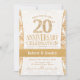 Invitation pour une fête de 20 ans de mariage en blanc et or.