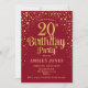 Invitation de fête du 20e anniversaire. Design élégant en or rouge et faux parties scintillant. Comprend des polices de caractères et des confettis stylisés. Message-moi si vous avez besoin d'âge personnalisé.