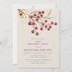 Belle invitation d'anniversaire rustique chic pour une fête d'anniversaire d'hiver. Il présente des baies rouges sur une branche nue ornée d'une cloche dorée et d'une ficelle.