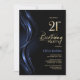 Invitation Fête du 21e anniversaire, noir et bleu élégant