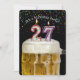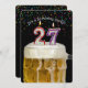 Numéro 27 bougies en tasse de bière avec confettis colorés sur noir pour l'invitation de fête du 27ème anniversaire.
