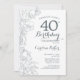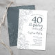 Ardoise Bleu Blanc Floral 40e Anniversaire Fête Invitation. Design moderne minimaliste avec accents de dessin botanique et police de script de typographie. Carte invitation simple et tendance, parfaite pour une célébration anniversaire élégante. Peut être customisé à n'importe quel âge. Invitations Zazzle imprimées ou téléchargement instantané modèle imprimable numérique.