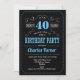 Invitation à la fête du 40e anniversaire. Design élégant noir, bleu, blanc rétro avec motif de tableau noir et police de script. Bravo à 40 ans ! Message-moi si vous avez besoin d'une personnalisation plus poussée.
