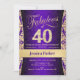 40e Anniversaire Invitation de fête en violet et or. Elégante carte invitation avec faux or parties scintillant et diamants. Fonctionne avec un modèle damask et une police de script. Fabuleux à quarante ans ! Design classique parfait pour une soirée élégante. S'il vous plaît, envoyez-moi un message si vous avez besoin d'un âge personnalisé.