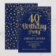 Invitation à la fête du 40e anniversaire. Design élégant en bleu marine et faux parties scintillant or. Comprend des polices de caractères et des confettis stylisés. Message-moi si vous avez besoin d'âge personnalisé.