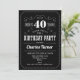 Invitation à la fête du 40e anniversaire. Design rétro élégant en noir et blanc avec motif de tableau noir et police de script. Bravo à 40 ans ! Message-moi si vous avez besoin d'une personnalisation plus poussée.