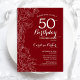 Red White Floral 50th Birthday Party Invitation. Design moderne minimaliste avec accents de dessin botanique et police de script de typographie. Carte invitation simple et tendance, parfaite pour une célébration anniversaire élégante. Peut être customisé à n'importe quel âge. Invitations Zazzle imprimées ou téléchargement instantané modèle imprimable numérique.