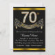 Elégant numéro or et diamant et bannière noir et or 70ème anniversaire invitation fête. Cette belle invitation de fête de 70ème anniversaire en noir et or est facilement customisée pour votre événement. Ce design frappant fonctionne bien pour un homme ou une femme.